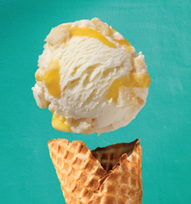 Salt and Straw upcycled icecream. This flavor is Passionfruit Yuzu Mochi Donuts & Whey Curd. Whey is the co-product of Greek-style yogurt production.