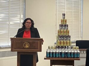 Rep. Monica Stonier at the Bottle Bill press event.